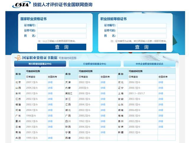 职业技能等级证书可全国联网查询查询地址:http://jndj.osta.org.cn/