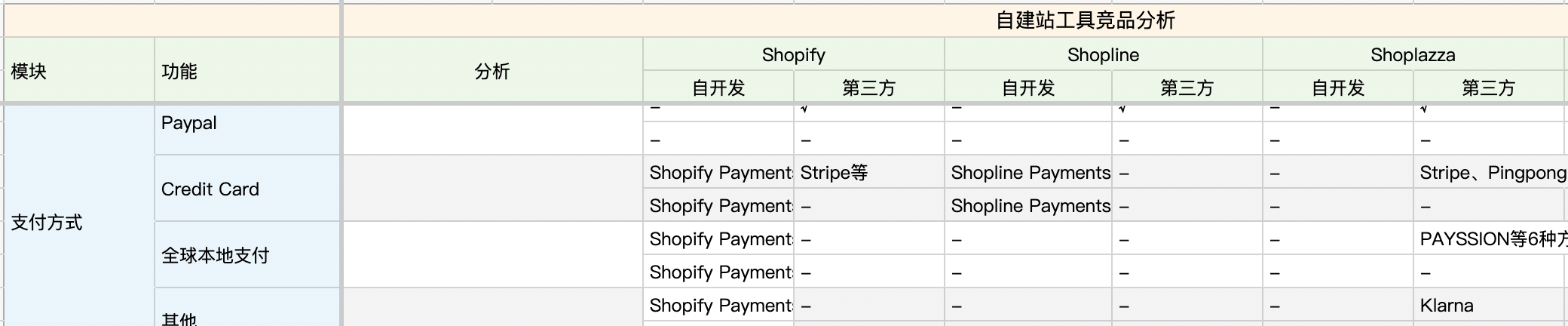 Shopline自开发了Shopline Payments,可用于信用卡支付(解决了中国大陆开通信用卡渠道困难的问题,具体如何尚未体验,但这确实解决了国内商家的一大痛点,赞