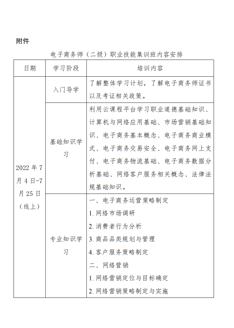 附件1:电子商务师(二级)职业技能集训班内容安排