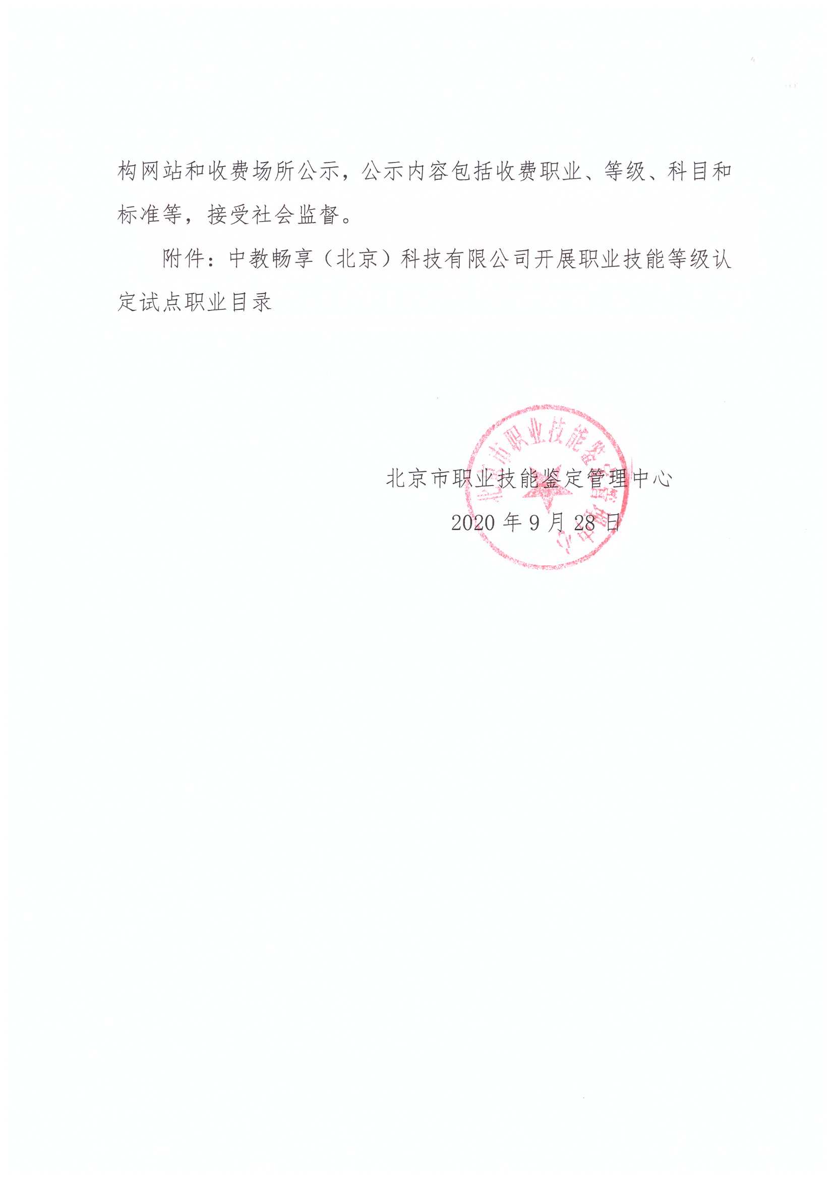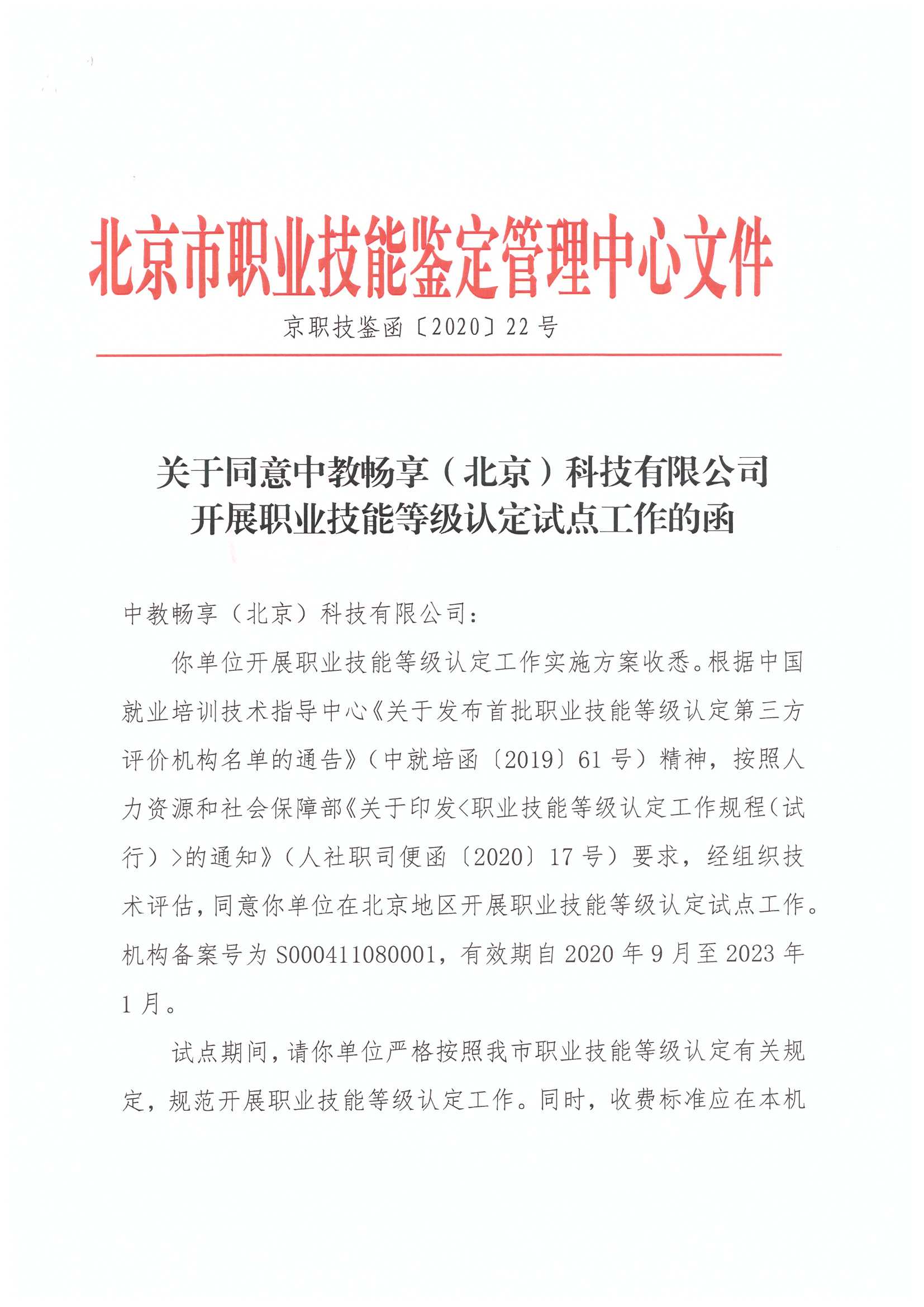 关于同意中教畅享(北京)科技有限公司开展职业技能等级认定试点工作的函