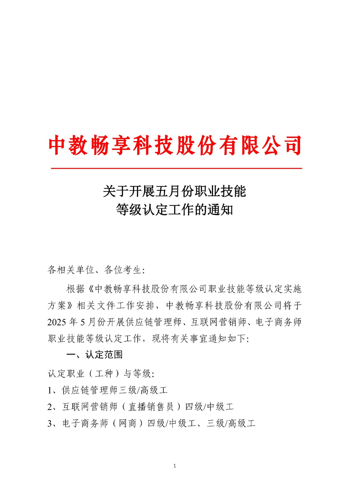 关于开展五月份职业技能等级认定有关工作的通知