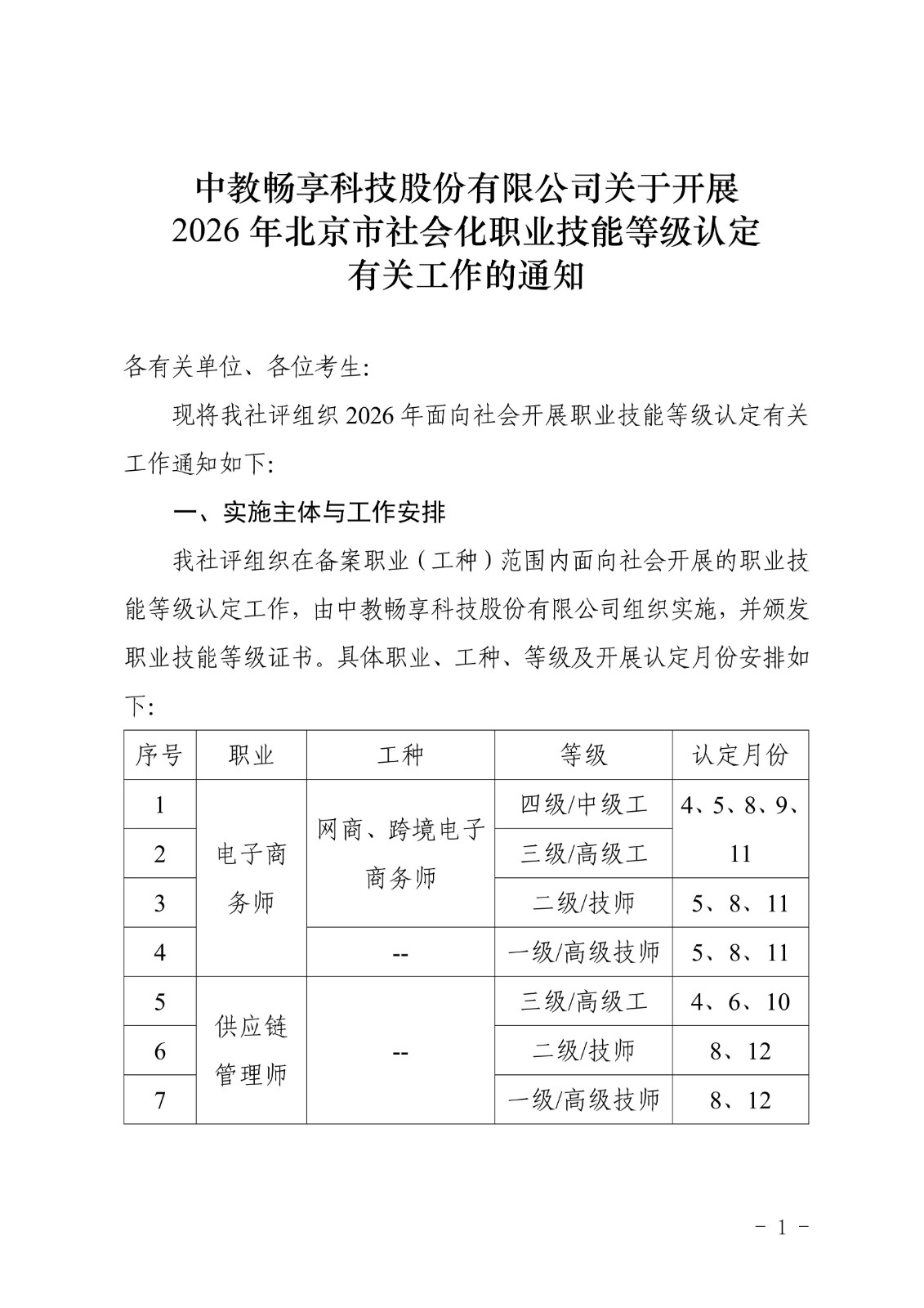 中教畅享科技股份有限公司关于开展2026年北京市社会化职业技能等级认定有关工作的通知