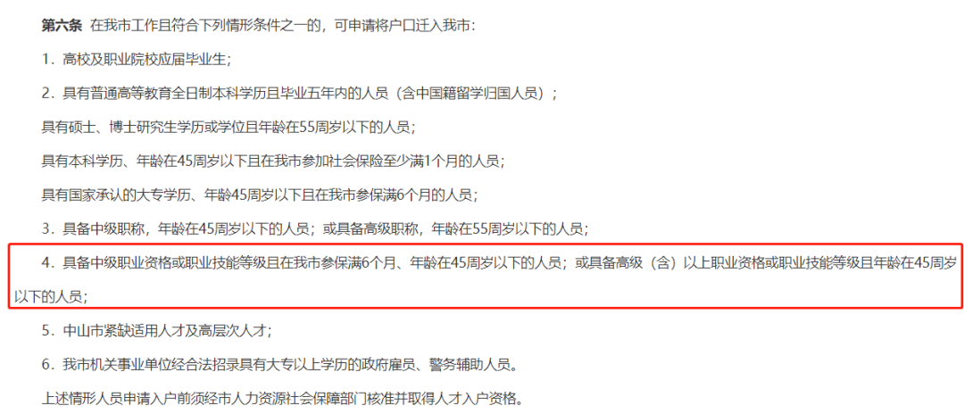 中山市积分落户相关政策