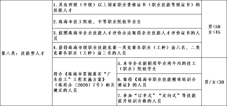 具备中级职业资格或职业技能等级且在我市参保满6个月、年龄在45周岁以下的人员;或具备高级(含)以上职业资格或职业技能等级且年龄在45周岁以下的人员。